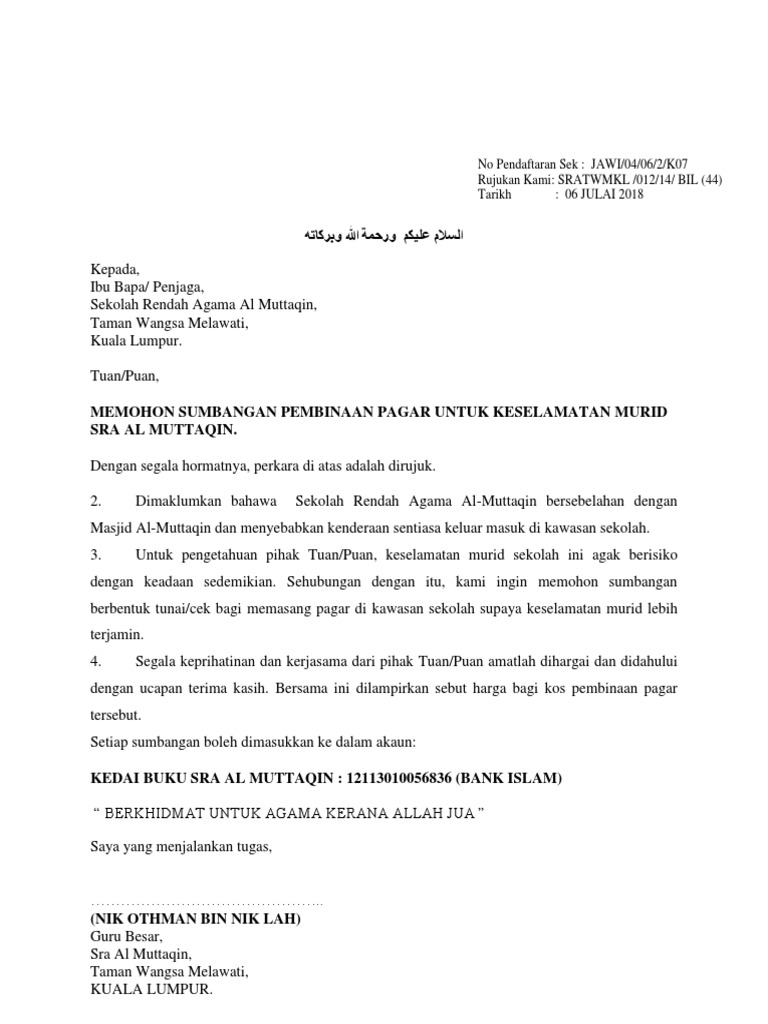Surat Sumbangan Pasang Pagar Sekolah Pdf